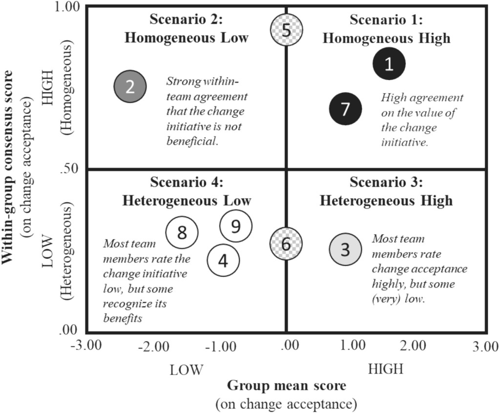 Abstract: Managers often rely on survey or assessment data, using mean scores to guide decision-making. However, mean scores alone do not reflect the underlying level of agreement among people whose scores were used to calculate that mean. Specifically, groups may have heterogeneous attitudes and beliefs, forming sub-group orientations that differ quantitatively and may even conflict. Since mean scores do not capture this variability, relying solely on mean scores can result in poor choices. We therefore propose an extension to the existing approach: pairing mean scores with within-group consensus information to gain a more nuanced understanding of group attitudes and beliefs. In this Perspective Article, we discuss the improvement of coupling means scores with within-group consensus information, demonstrate the need for it to make better management decisions, and elaborate on the advantages and limitations. We believe our extension enables managers (and scholars) to answer new questions and revisit existing ones.